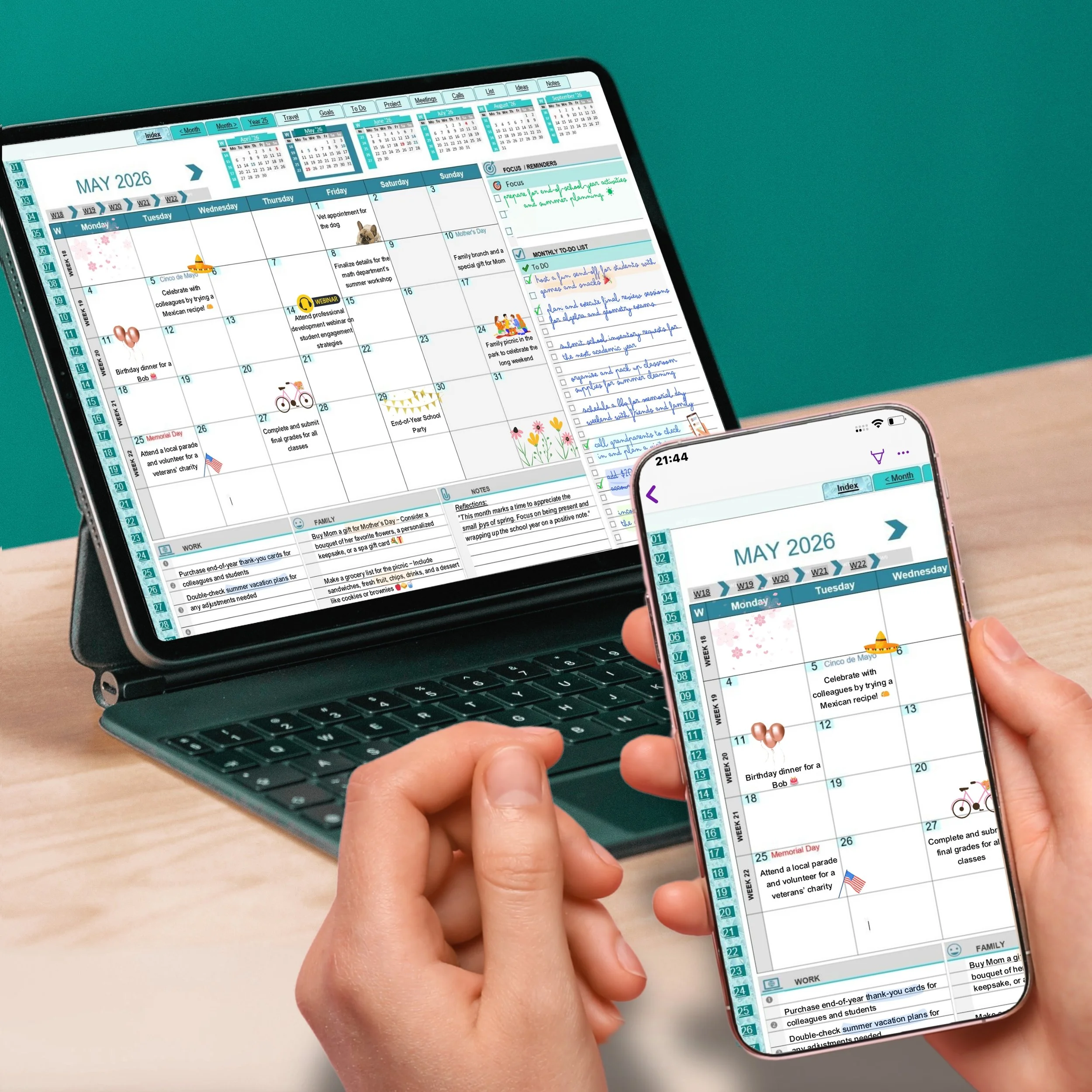 ✔Optimized for any orientation—horizontal or vertical, and has 6 mini calendars on each page